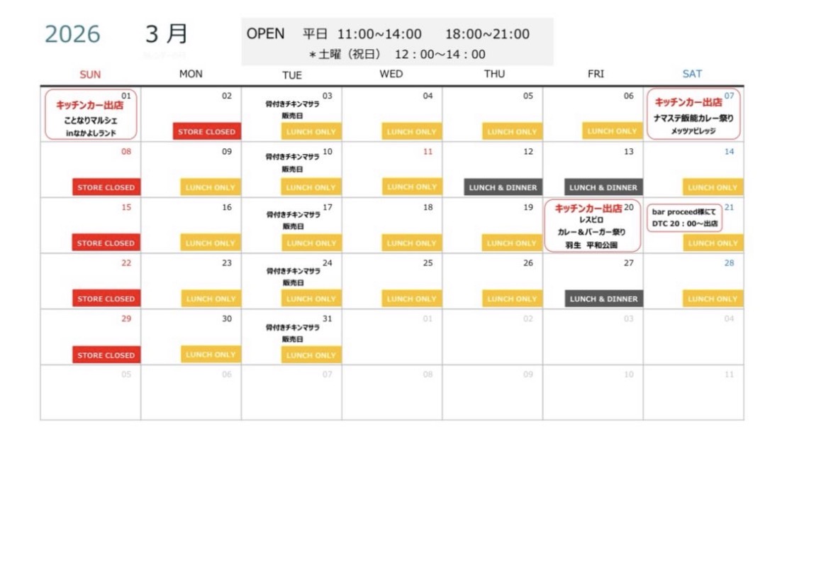 カレーの種類は4種類!日替わりに毎週変わる週替わりカレー、ポークにチキンベースで来店が毎回楽しみに!